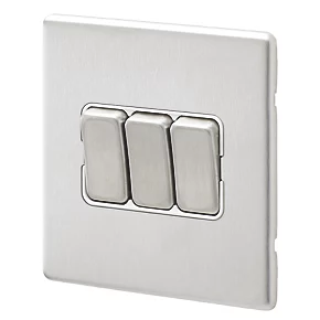 Hot Sale ✨ MK Aspect 10AX 3-Gang 2-Way Switch Brushed Stainless Steel with White Inserts ????