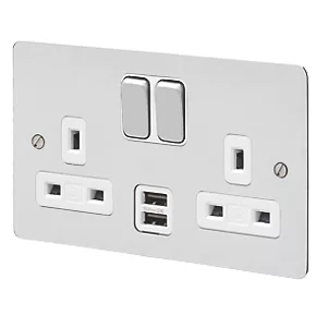 Outlet โค๏ธ MK Edge 13A 2-Gang DP Switched Socket + 2A 2-Outlet Type A USB Charger Polished Chrome with White Inserts ๐