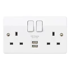 Coupon ๐ MK Logic Plus 13A 2-Gang DP Switched Socket + 2A 2-Outlet Type A USB Charger White ๐ฏ