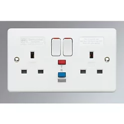 New โญ MK Aspect 13A 2-Gang DP Switched Plug Socket Polished Chrome with Black Inserts ๐